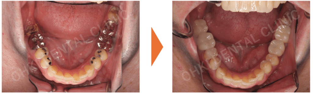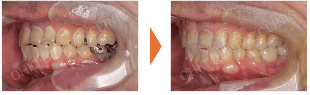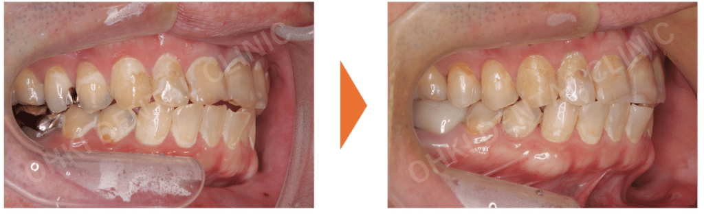 - 噛み合わせの柱が再建されたことで、今後、残存している歯の破折リスクや負担が軽減されました。