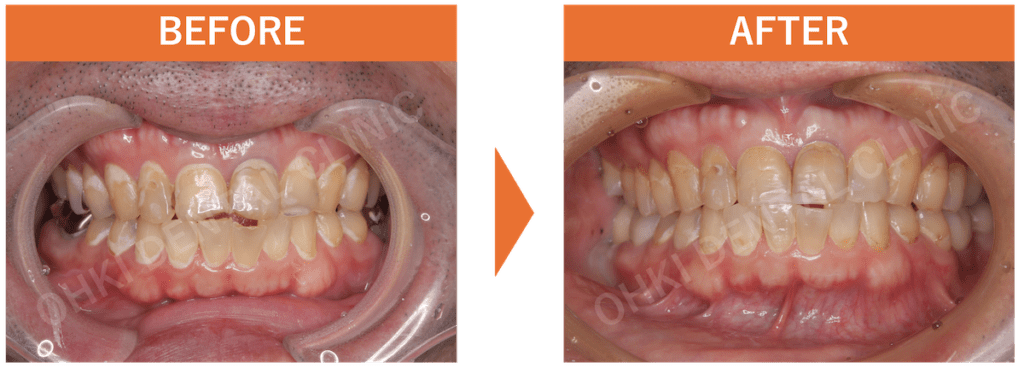 インプラント治療をいきなり始めるのではなく、まず初期治療を徹底的に行いました。