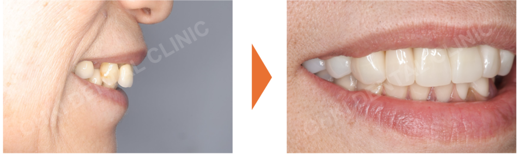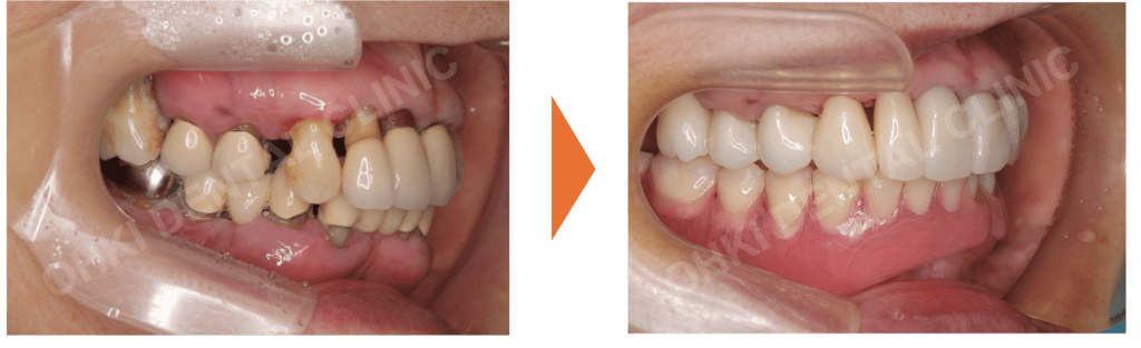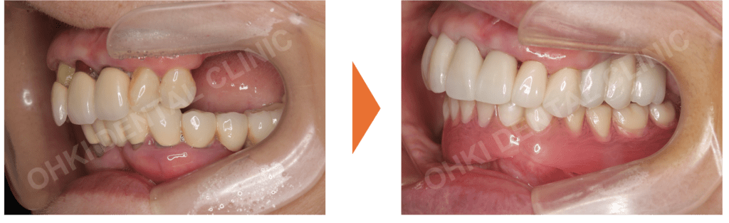 - 前歯から奥歯までしっかり噛めるようになり、機能的な回復を遂げました。