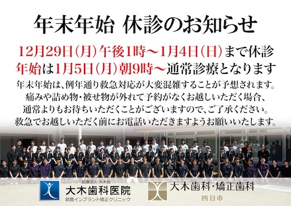 平素より大木歯科・矯正歯科 四日市をご利用いただき、誠にありがとうございます。